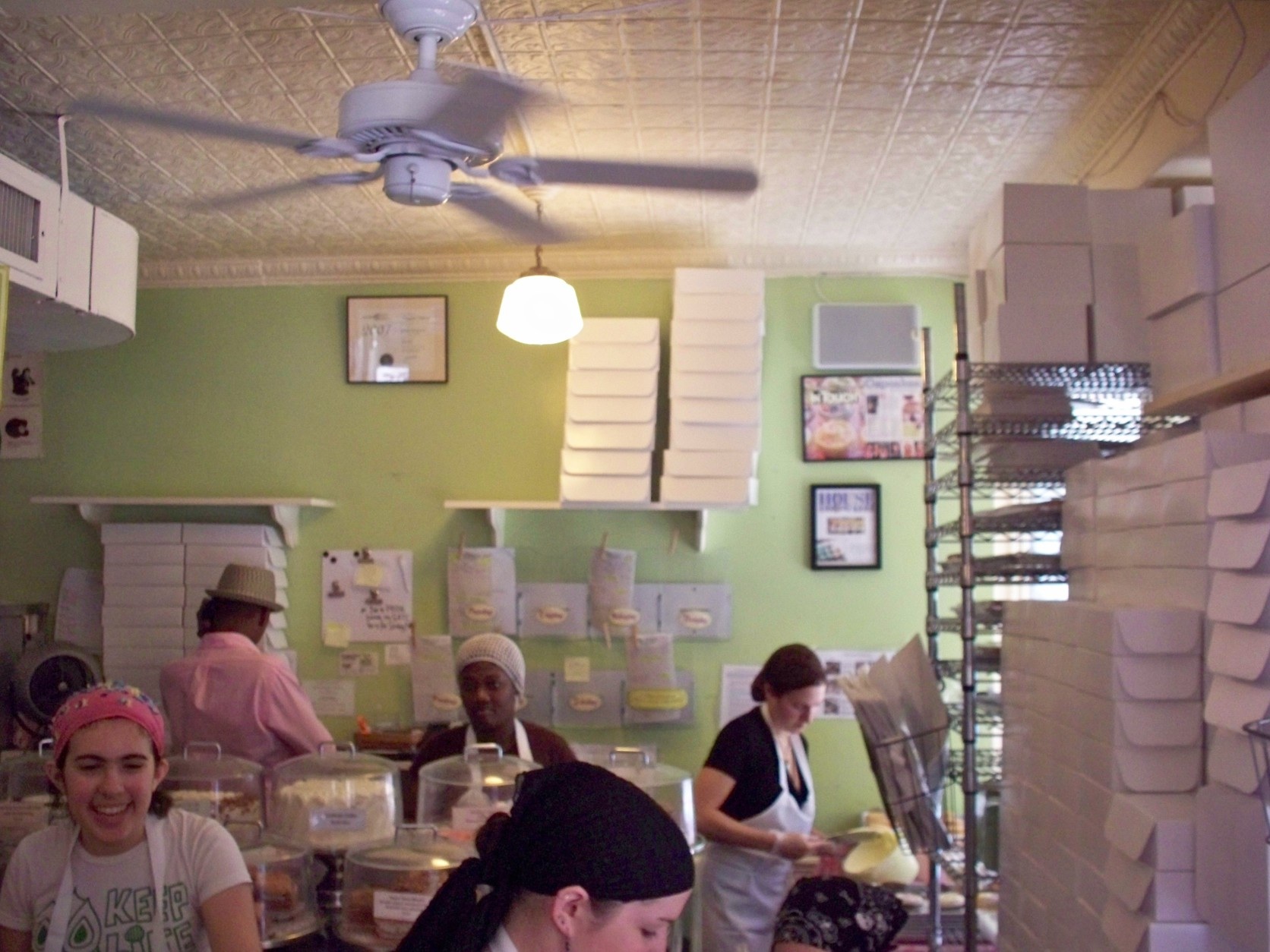 The bakery is small and filled with the soft, sugary smells that go perfectly with the pastel colors throughout. The summer day my sister and I stopped in, it was filled with young women laughing and glistening with a sheen of sweat– busily baking, frosting, wrapping, and ringing up cupcakes as quickly as customers could fill a box. This was stop #3 on our cupcake tour of NYC and we made it only to a stoop around the corner before we sat down and devoured a cupcake and a half a piece in a matter of minutes.