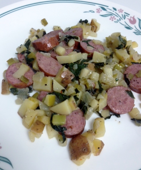 http://www.bluebonnetsandbrownies.com/2011/10/29/kielbasa-apple-and-kale-hash-recipe/