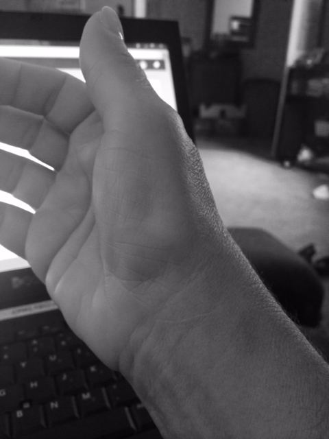 So, now here I sit trying to type this blog post with my gimp right hand that is… thumb, knuckles, wrist joint and tendon swelling:  the perfect storm that equals can’t open or close my hand, can’t grip, can’t lift, can’t twist, dress, brush hair, you get the picture: